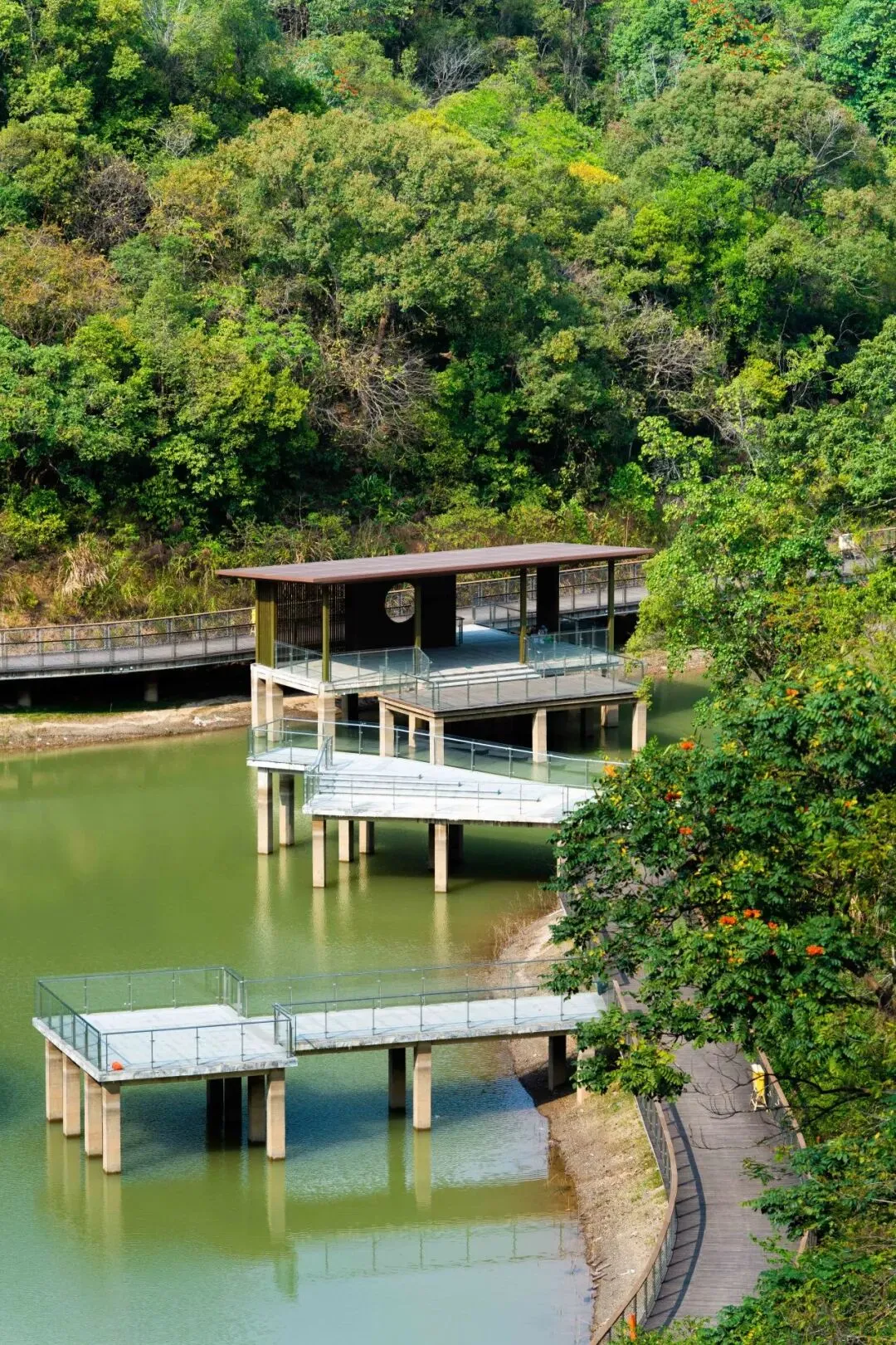 山峦叠翠环绕着一汪碧水,构成了一幅极致的“山水相依”画卷,找一处临水平台静坐,看着湖面波光粼粼,听着水声与鸟鸣,放空自己,享受难得的独处时光。