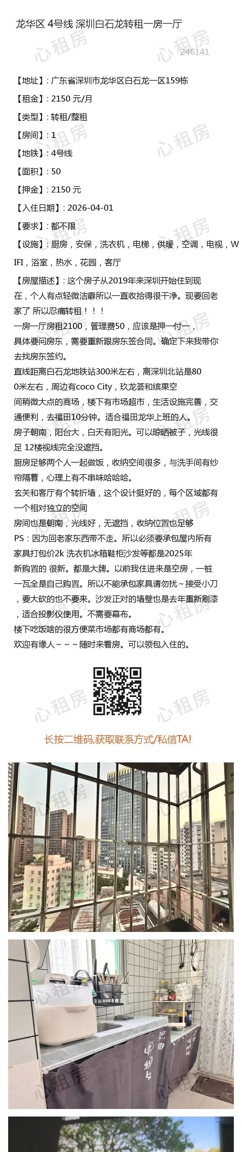 深圳租房【龙华2则】房源①:4号线深圳龙华白石龙转租一房一厅2150元/月;房源②:…