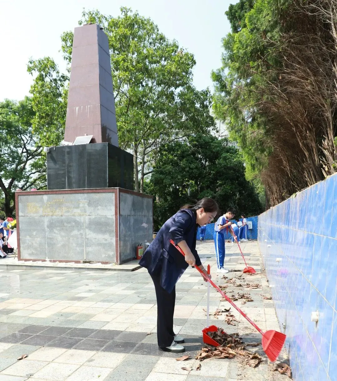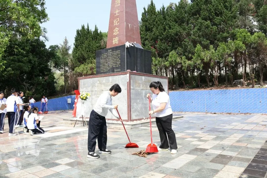 活动伊始,全体师生对纪念碑广场进行细致清扫。大家以扫帚为笔,以汗水为墨,在洁净场地的劳动中,写下对先烈的无声敬仰。这不仅是一次环境清理,更是一场涤荡心灵的精神洗礼。同学们用最朴素的劳动,向长眠于此的英雄表达最纯粹的崇敬。