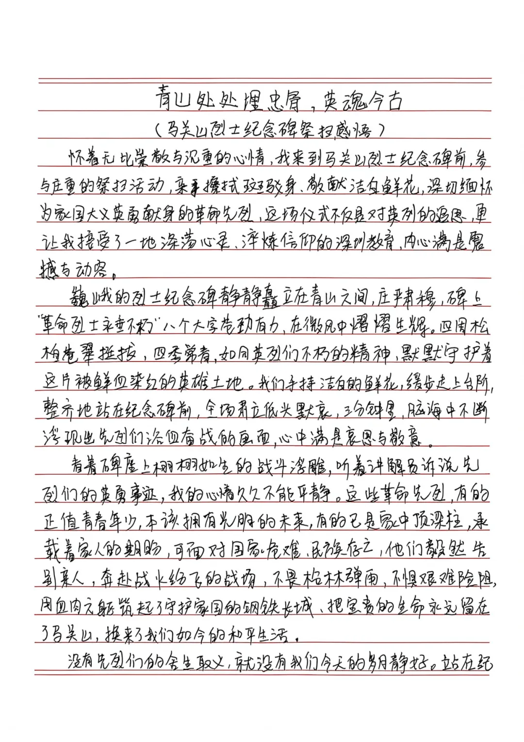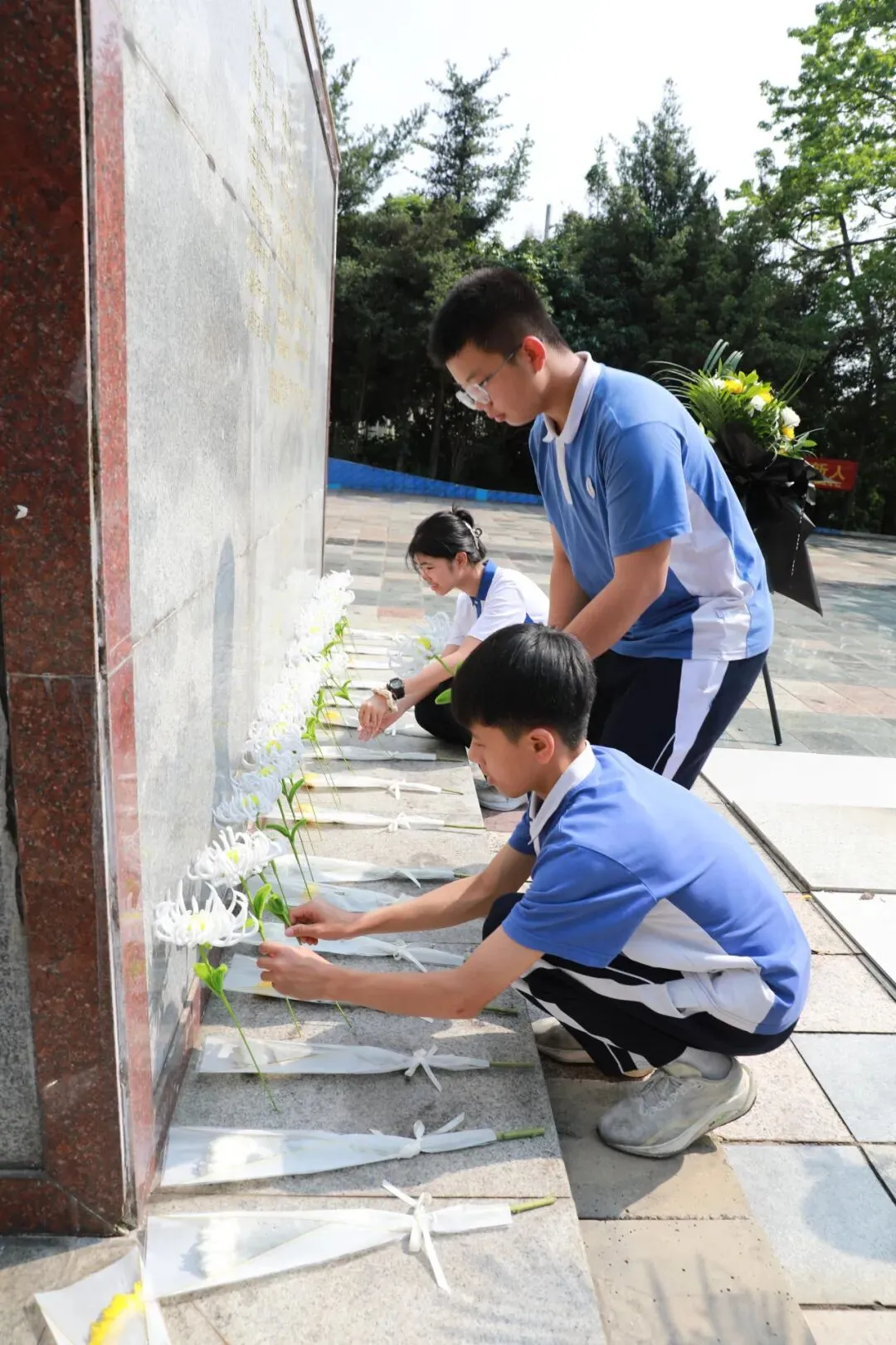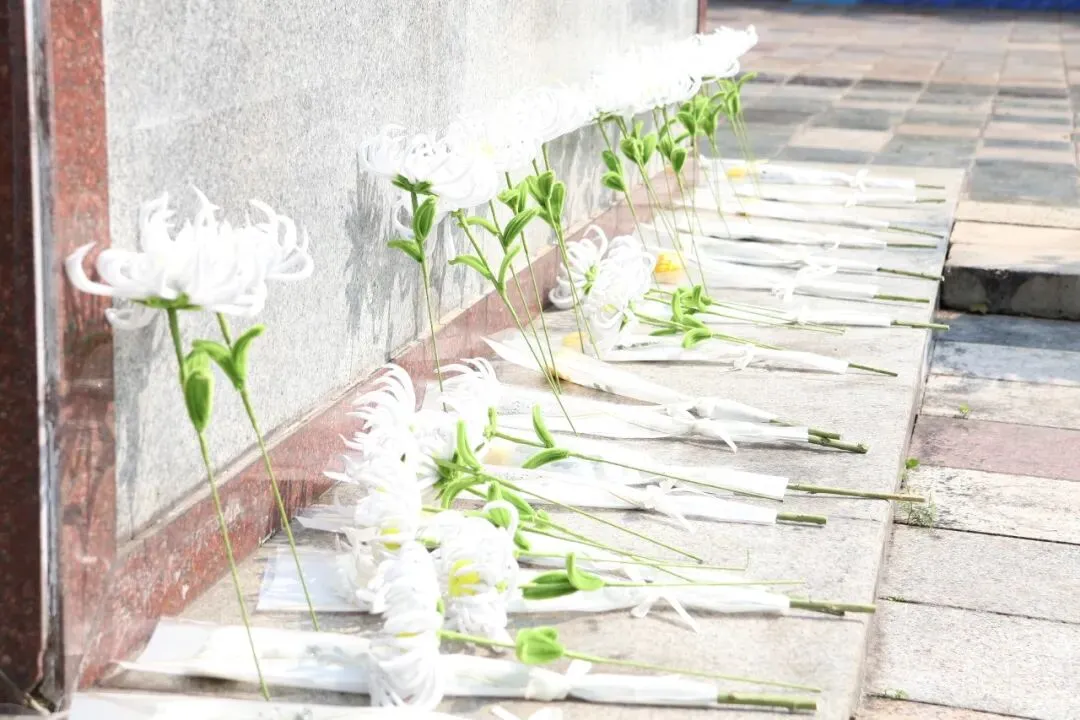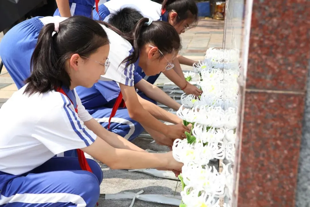 活动最后,全体师生手持由手工社团学生精心制作的白花,依次走向纪念碑,轻轻敬献于碑前。大家缓步绕行,瞻仰碑文,用最朴素、最庄重的行动,寄托对革命先烈的无尽追思。朵朵白花,是心意的凝结;步步缓行,是历史的回望。这不仅仅是一场祭扫仪式,更是一堂生动的感恩追思课——铭记从何而来,方知向何而去。