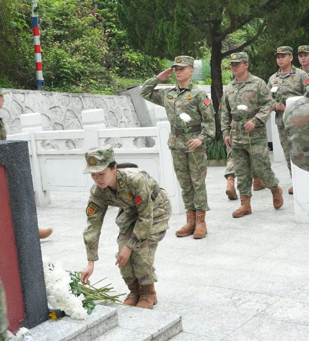 4月2日,福田区沙头街道退役军人罗小平老班长,远赴云南麻栗坡烈士陵园,祭奠在老君山(八里河东山)战斗中英勇牺牲的战友。