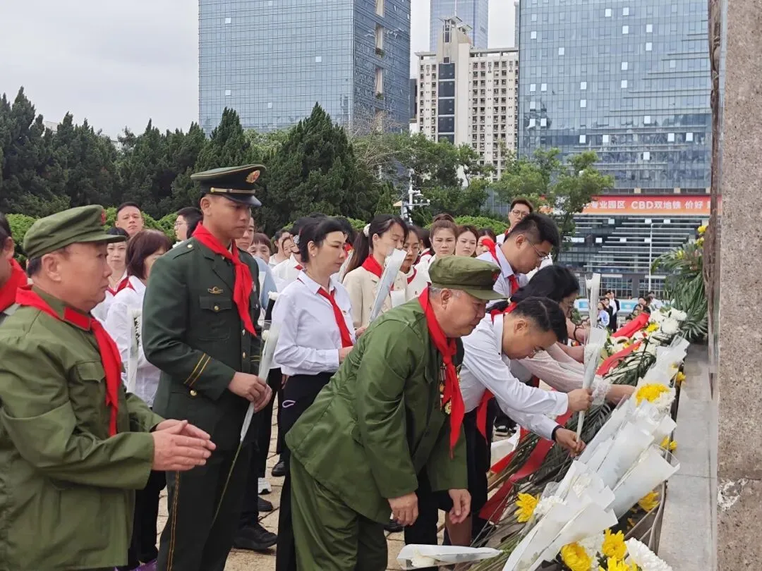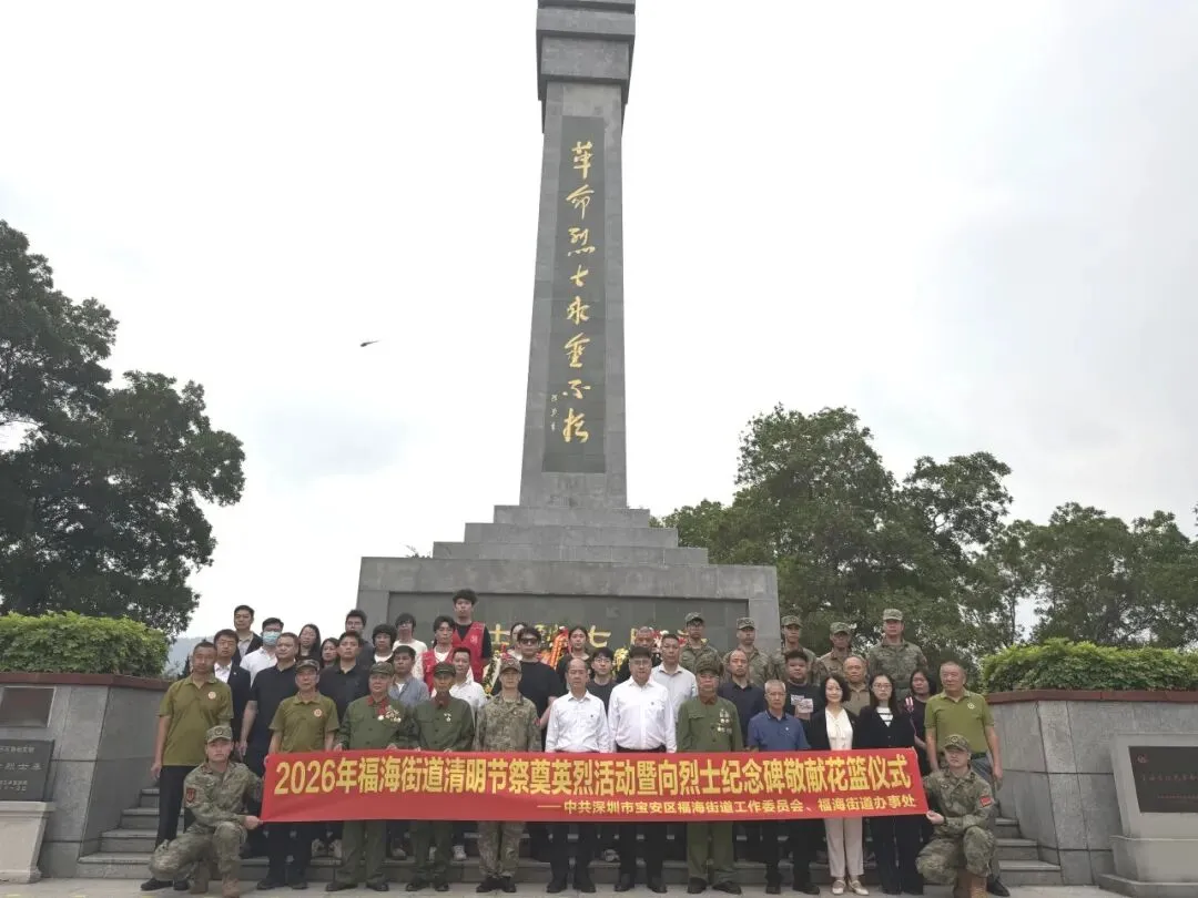 4月3日,宝安区福海街道退役军人服务站联合街道人民武装部,组织退役军人代表、重点优抚对象、民兵代表、支部党员及红星志愿者共计40余人,前往新桥街道洪田七烈士纪念碑,开展清明祭奠革命先烈活动,缅怀革命先烈,传承红色薪火。