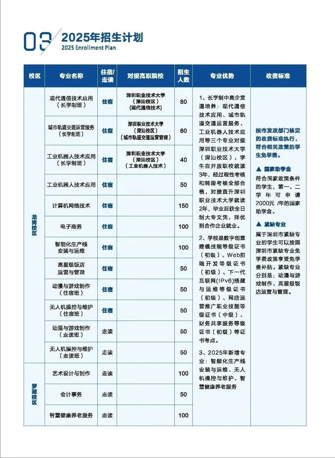 深圳市开放职业技术学校是深圳开放大学主办的公办全日制中职,1985 年创办、2008 年更名,市一级公办校,有罗湖、龙岗(主)两校区。开设城轨运营、电子商务、动漫与游戏制作等 11 个专业,是世界技能大赛商务软件解决方案项目深圳集训基地,双师型教师占比高。主打 “中职 - 电大直通车” 与中德双元制培养,升学渠道多元(含中澳国际班),就业率稳定在 88.5% 以上,办学理念为 “以服务为宗旨,以技能为核心,以就业为导向”。