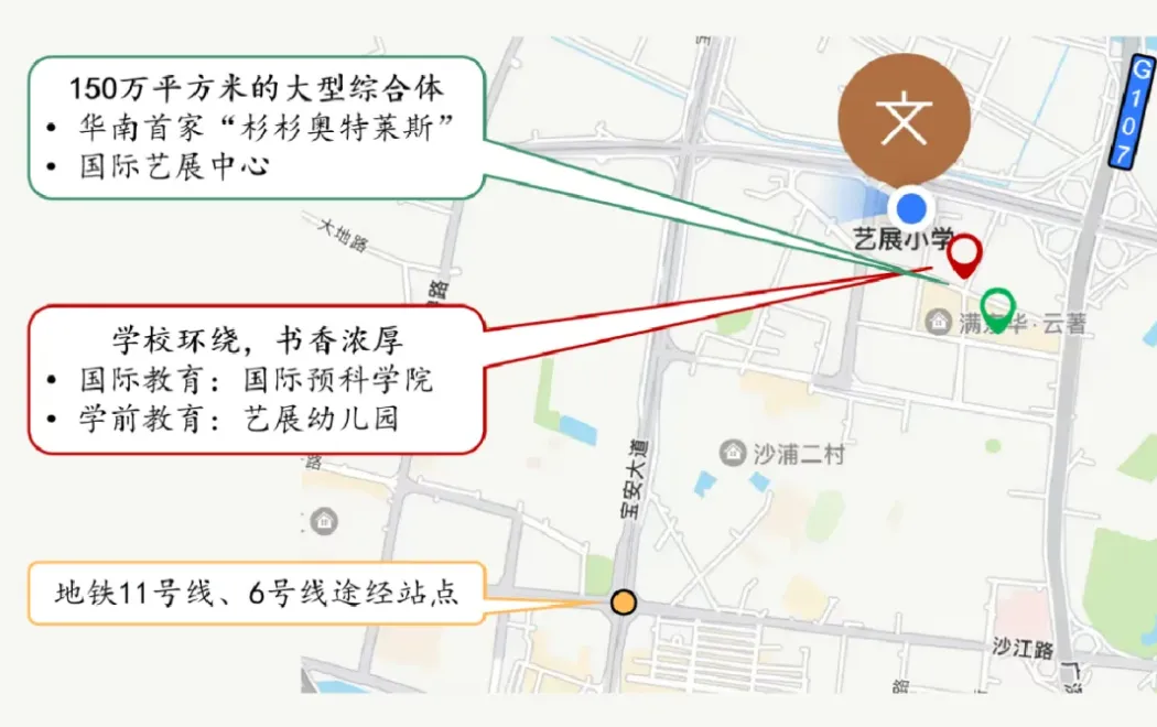 宝安区艺展小学成立于2018年1月,是一所由宝安区教育局按照高标准定位、高规格设计、高质量发展打造的样板学校。学校位于“湾区核心,西部门户”,临近地铁11号线、6号线、深圳机场,毗邻107国道、京港澳高速、广深沿江高速、南光高速等多条主干道,交通便利,区位优势显著。