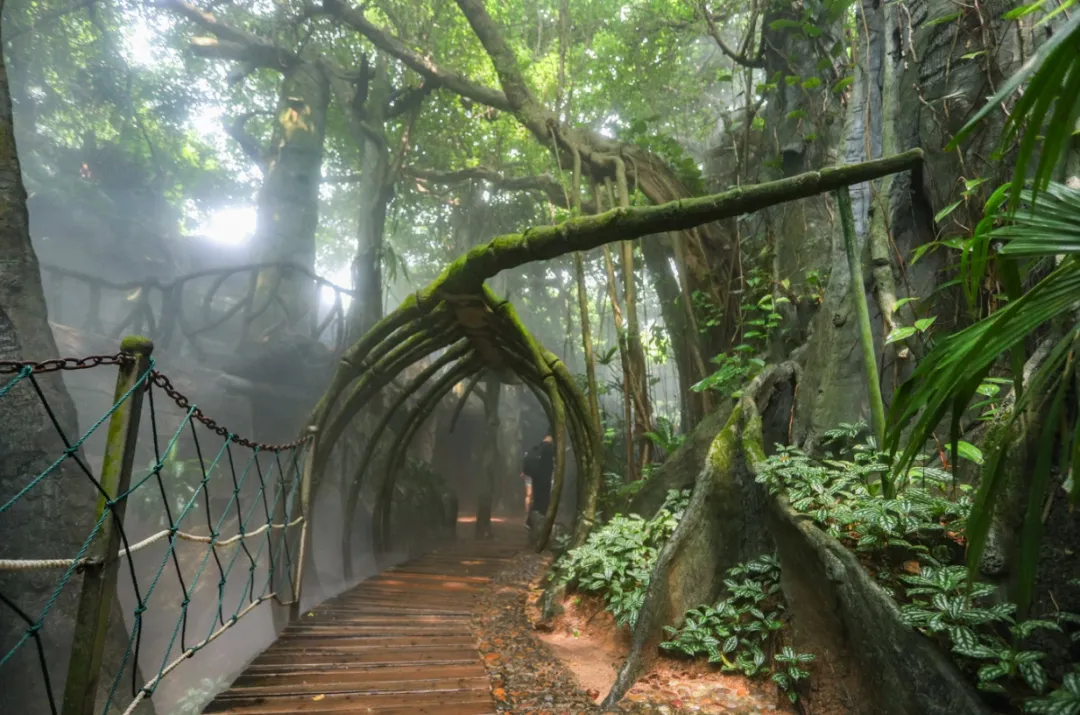 青青世界是比较适合阴天/雨天前往的景区之一,他的整体造景,就是热带雨林风格,很有氛围感!
