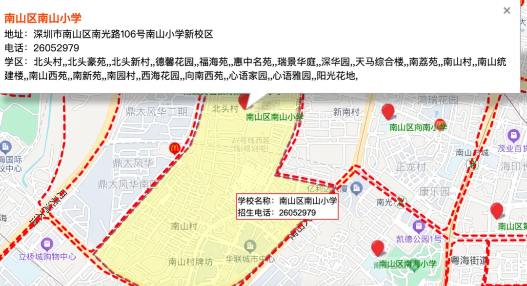 4、对应学区:深圳市南山区实验教育集团南海中学+南山小学,房子学位杨帆经过南山区教育局学区网址查过该学位未锁定,房东孩子也没有使用