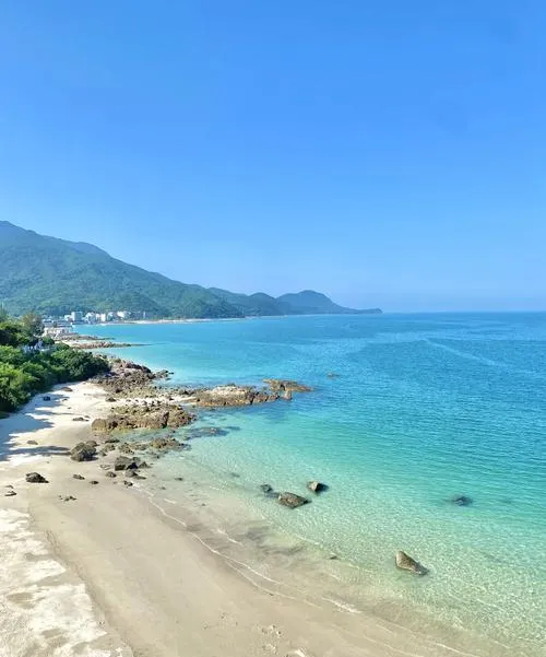 这里的沙子细腻柔软,海水清澈见底,最关键的是没有那些商业化的痕迹,没有成排的遮阳伞出租、没有嘈杂的音响、没有到处兜售烧烤的小贩,就是纯粹的沙滩和海,你可以光着脚在海边走,可以坐在礁石上发呆,可以等一场日落,不会有人打扰你。如果你想拍照,这里的礁石和海岸线的曲线特别好,早上七八点钟去,光线柔和,海面上会有薄雾,拍出来的照片自带滤镜效果。记住一点,桔钓沙没有什么配套设施,所以你得自己带水和吃的,但这种"不便利"恰恰成就了它的原始感。