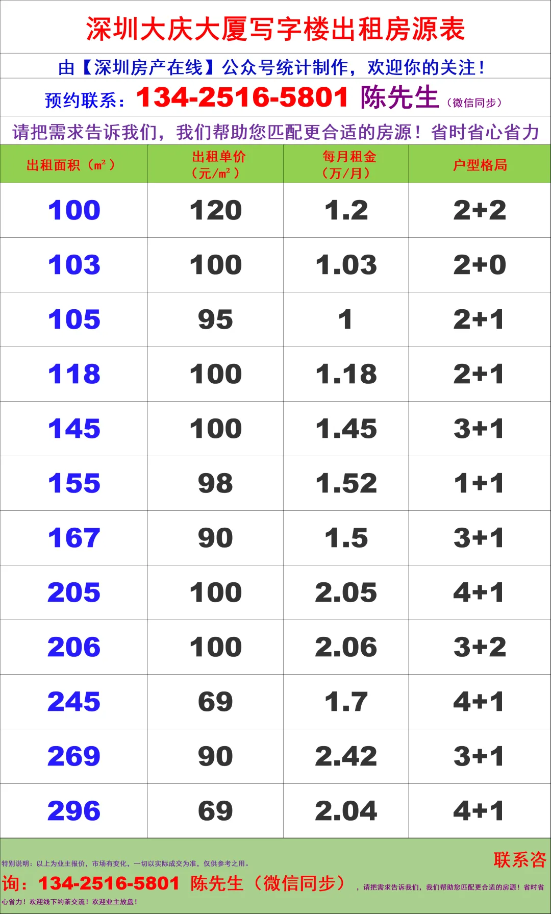 【深圳房产在线】陈经理写字楼租赁团队:134-2516-5801 (微信同步) 客户免佣 全程线下带看
