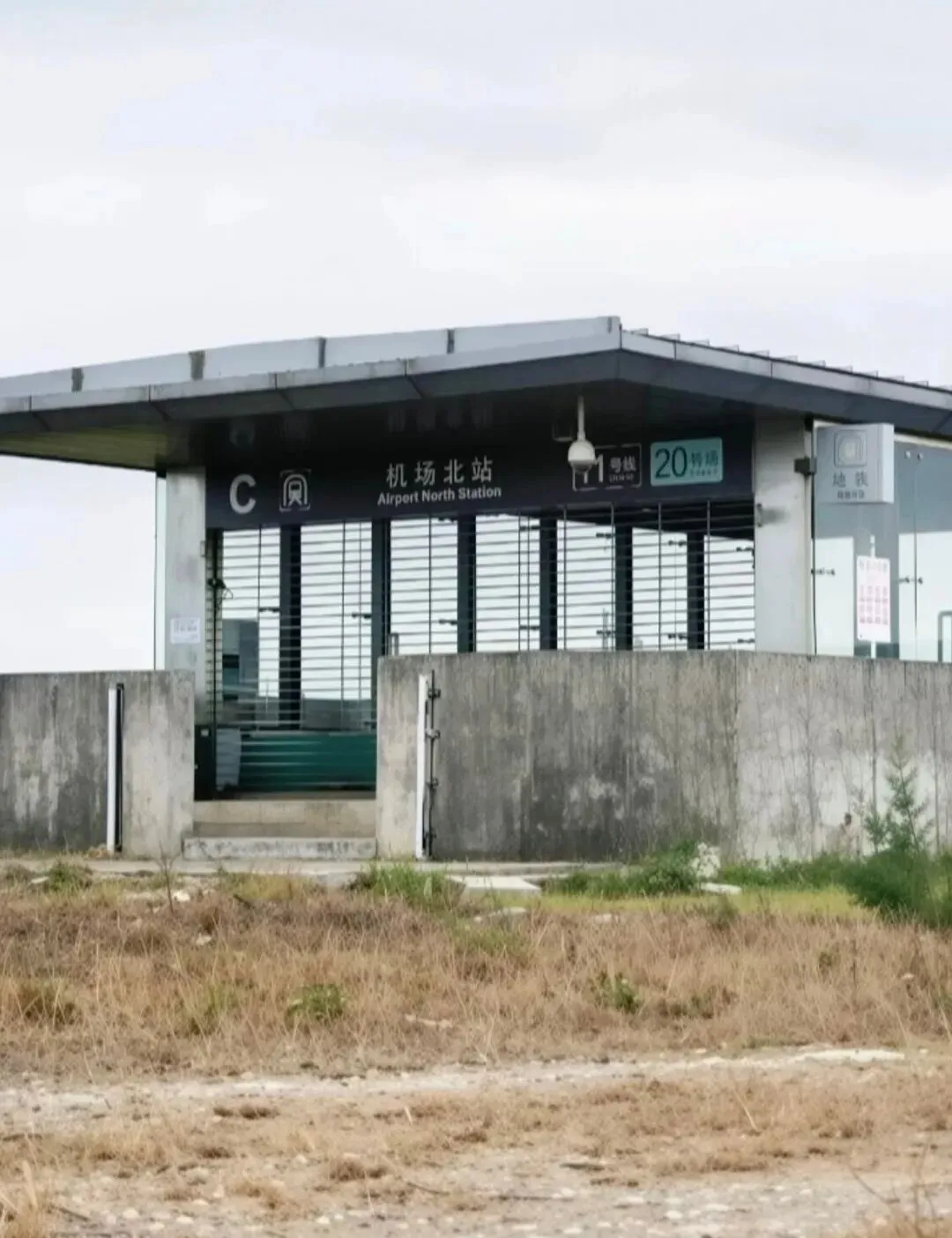 可现实却是,走出闸机,看不到外卖骑手穿梭,听不到汽车喇叭声,只有风吹荒草的沙沙声,和远处飞机起降的轰鸣。