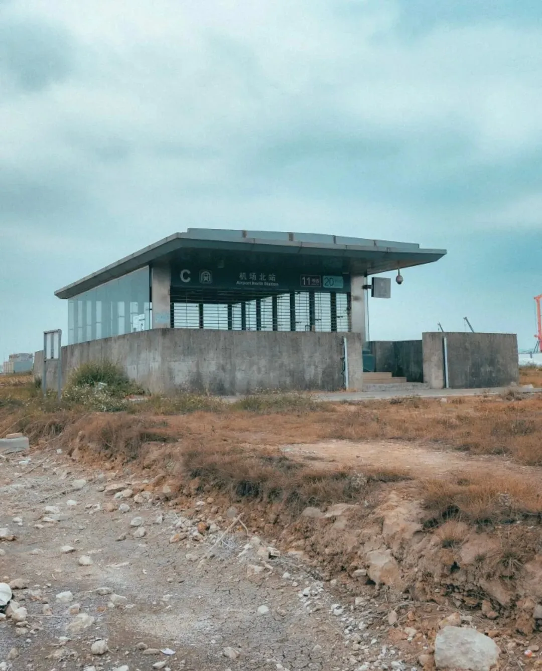 一旦走出站厅,视野陡然开阔——没有车水马龙,没有熙攘人流,只有大片空地、随风摇晃的野花,以及生锈的围栏。偶尔有飞机低空掠过,轰鸣声打破宁静,与地面的荒凉光景形成一种奇异的反差。