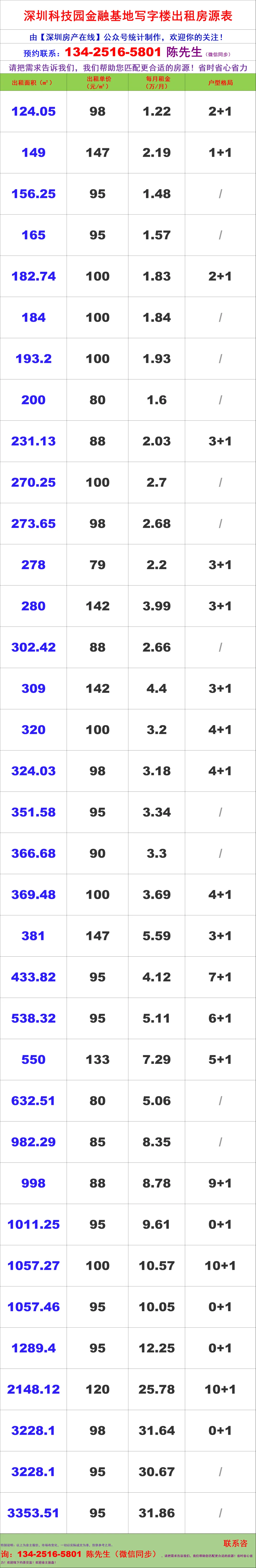 【深圳房产在线】陈经理写字楼租赁团队:134-2516-5801 (微信同步) 客户免佣 全程线下带看