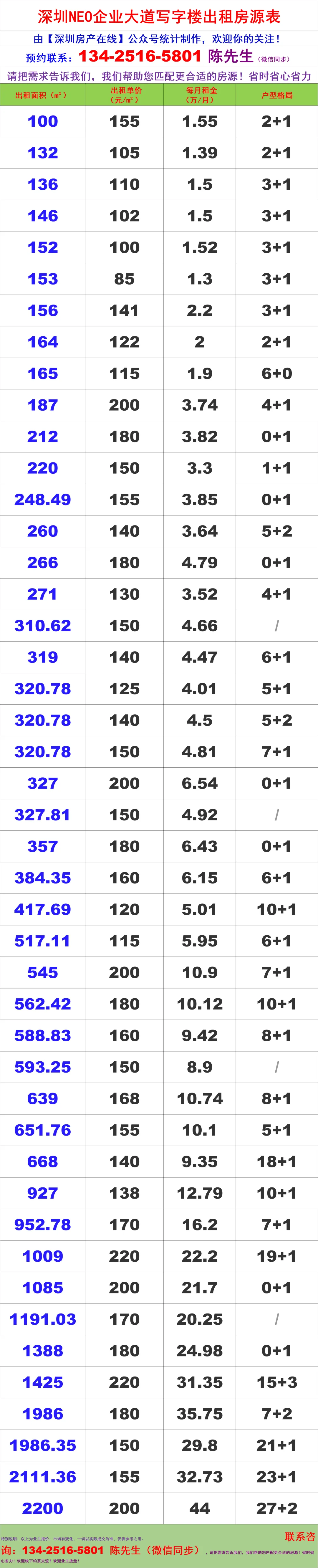 【深圳房产在线】陈经理写字楼租售团队:134-2516-5801 (微信同步)