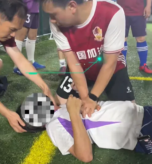 巧合得如同剧本,当晚和他一起踢球的队友,正是宝安区中医院的医生们,没有一秒钟的慌乱。在患者失去知觉10多秒后,急救的“生命链”已经展开:有人飞奔去拿球场配备的AED(自动体外除颤器),有人立刻拨打120,而剩下的医生球友们直接跪倒在草坪上,开始了专业的心肺复苏。