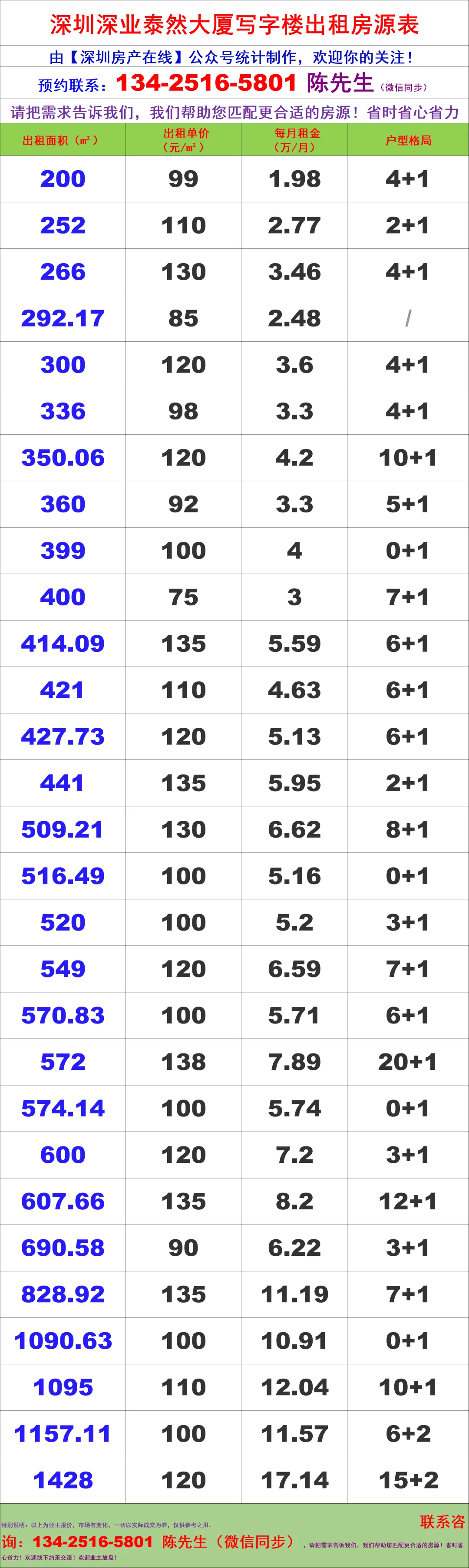 【深圳房产在线】陈经理写字楼租赁团队:134-2516-5801 (微信同步) 客户免佣 全程线下带看
