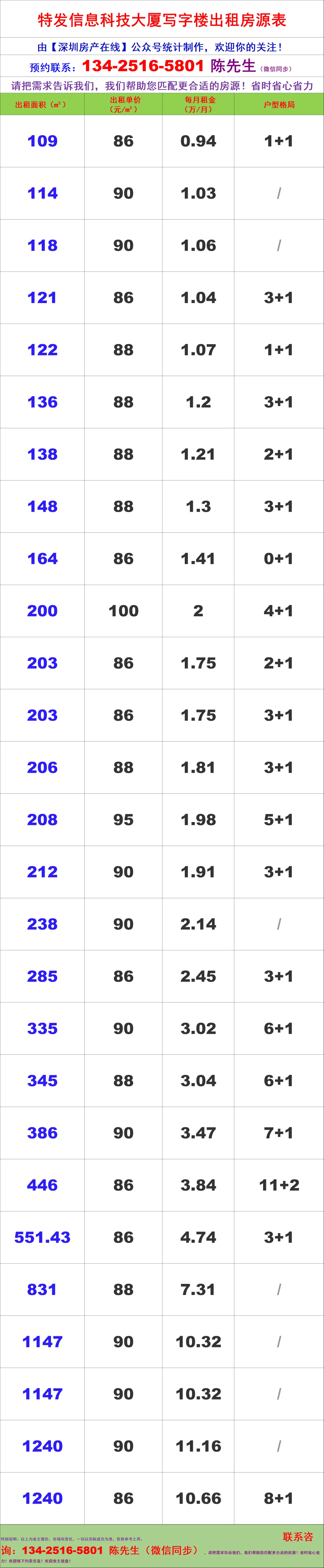 【深圳房产在线】陈经理写字楼租赁团队:134-2516-5801 (微信同步) 客户免佣 全程线下带看