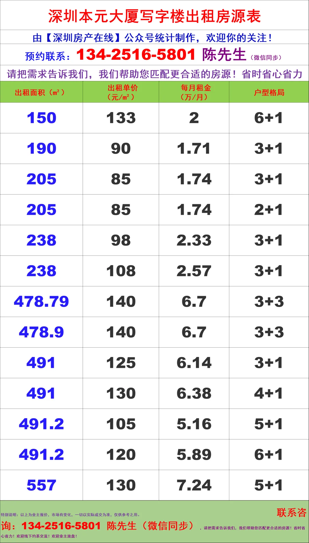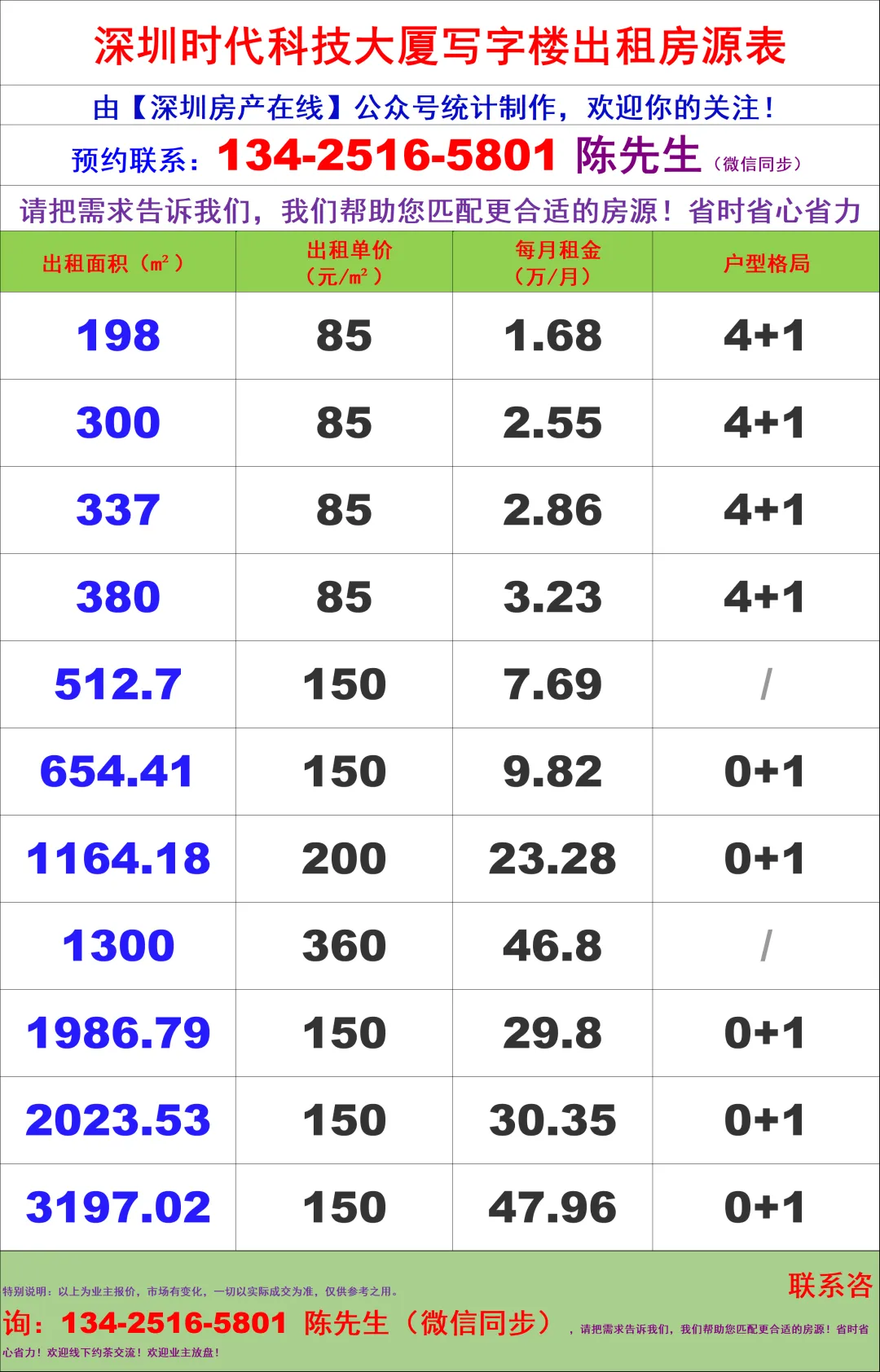 【深圳房产在线】陈经理写字楼租售团队:134-2516-5801 (微信同步)