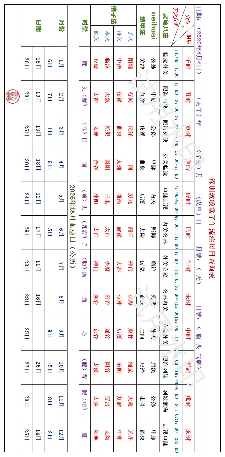 >深圳敦敏堂《子午流注:今日开穴》 2026 4月4日
