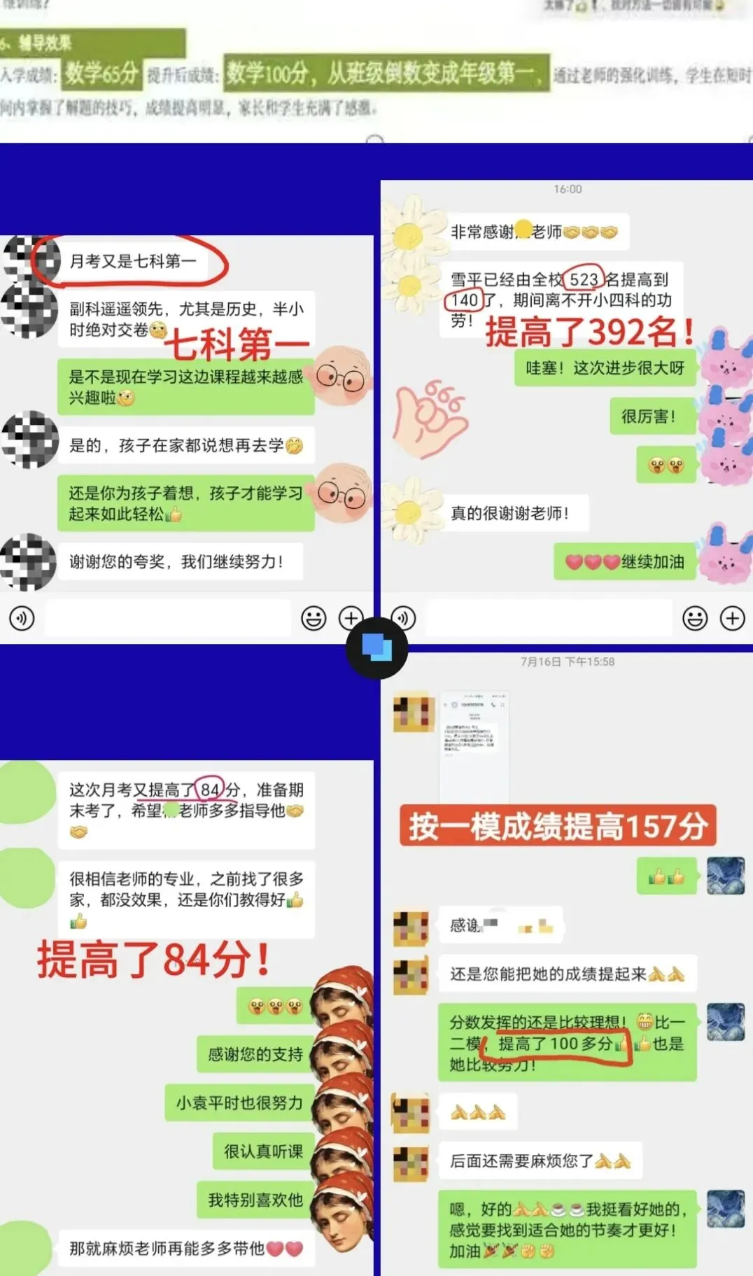 最终成果:中考较一模提分157分,单次月考提分84分,成功上岸目标高中