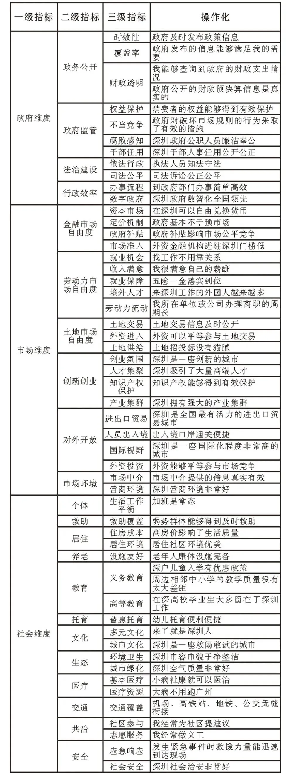 一般而言,测量现代化水平可以从主观测量和客观测量两个方面进行。前者主要是通过问卷调查,了解不同的人群 (专家、商业人士、普通民众等) 对某个国家或者地区现代化状况的主观评价。后者主要是通过官方公布的数据来衡量现代化状况。考虑到客观数据的可得性与可靠性的问题,本文采用主观测量方法,即市民对深圳现代化水平的主观感知,即强调公众的感知与体验在现代化测量中的关键作用,凸显“以人民为中心”的发展思想。