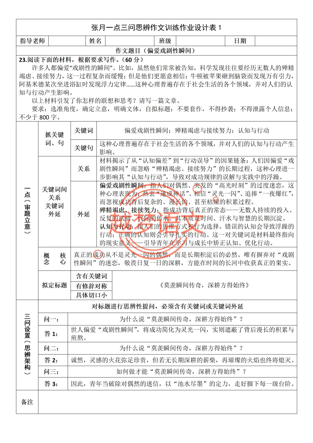 题目:《莫羡瞬间传奇,深耕方得始终》