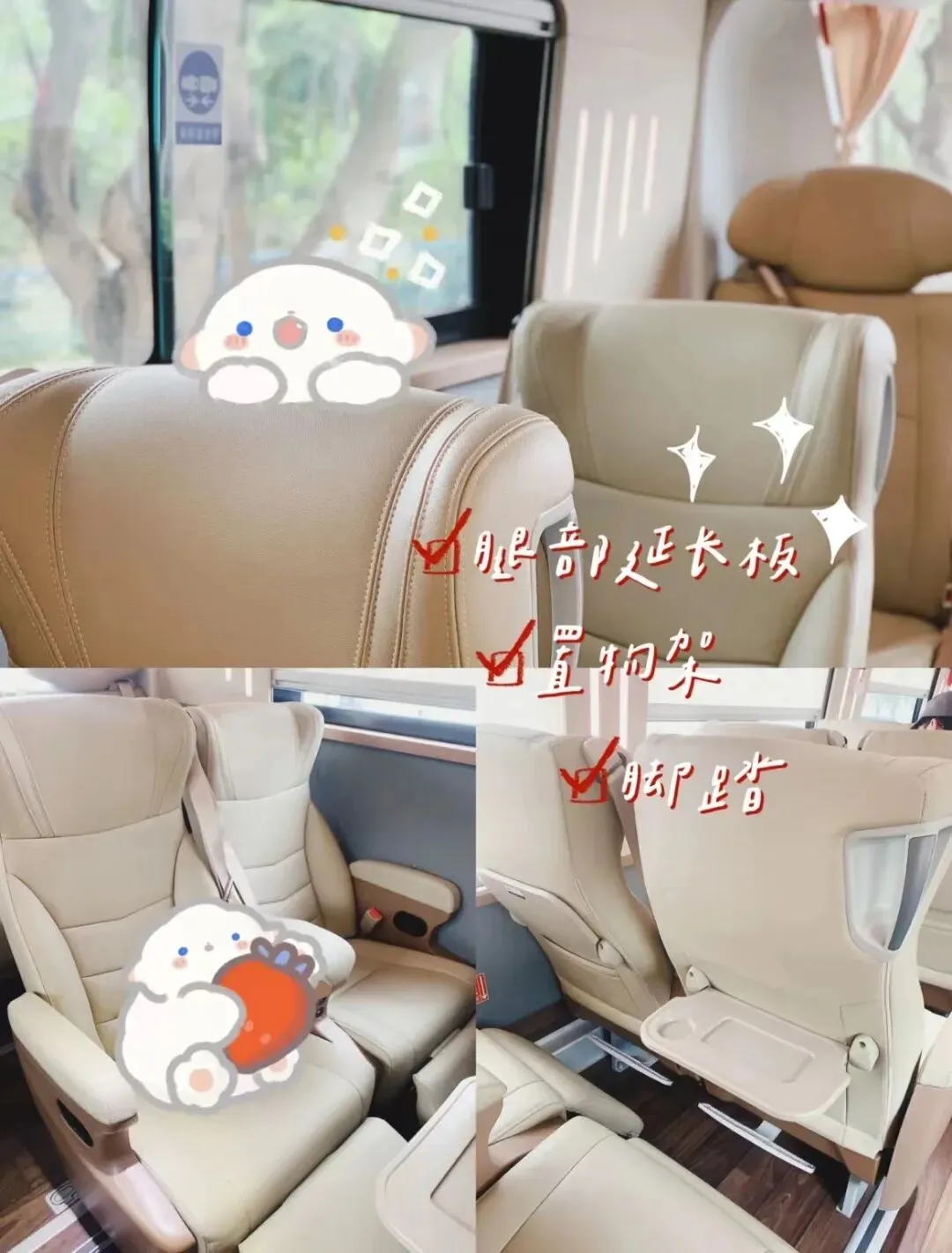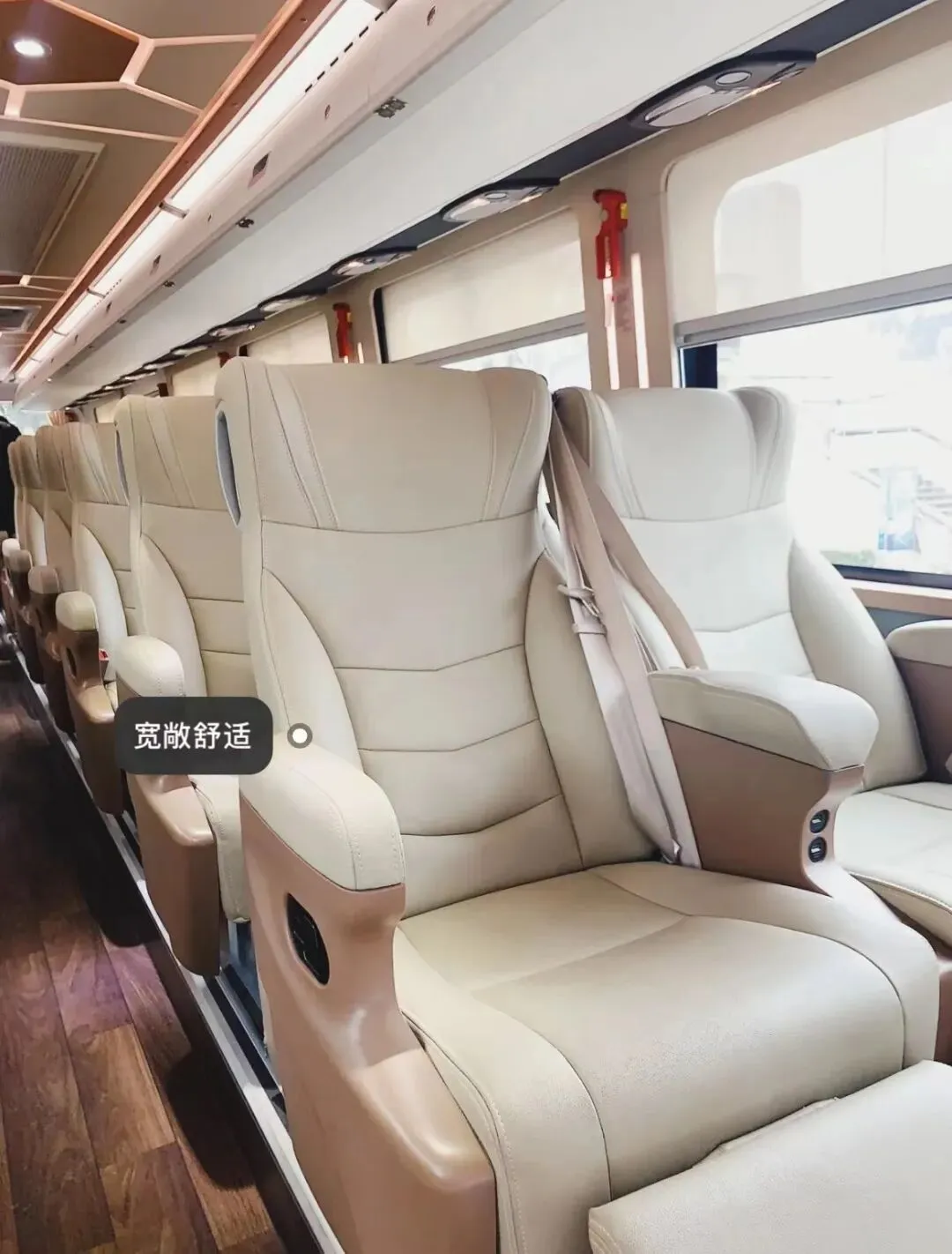 座位上方设有行李放置区,可随意调节的空调风位、拉升窗帘、高度升降座椅等随你自由调节,多个人性化设计,给你不一样的出行新体验。