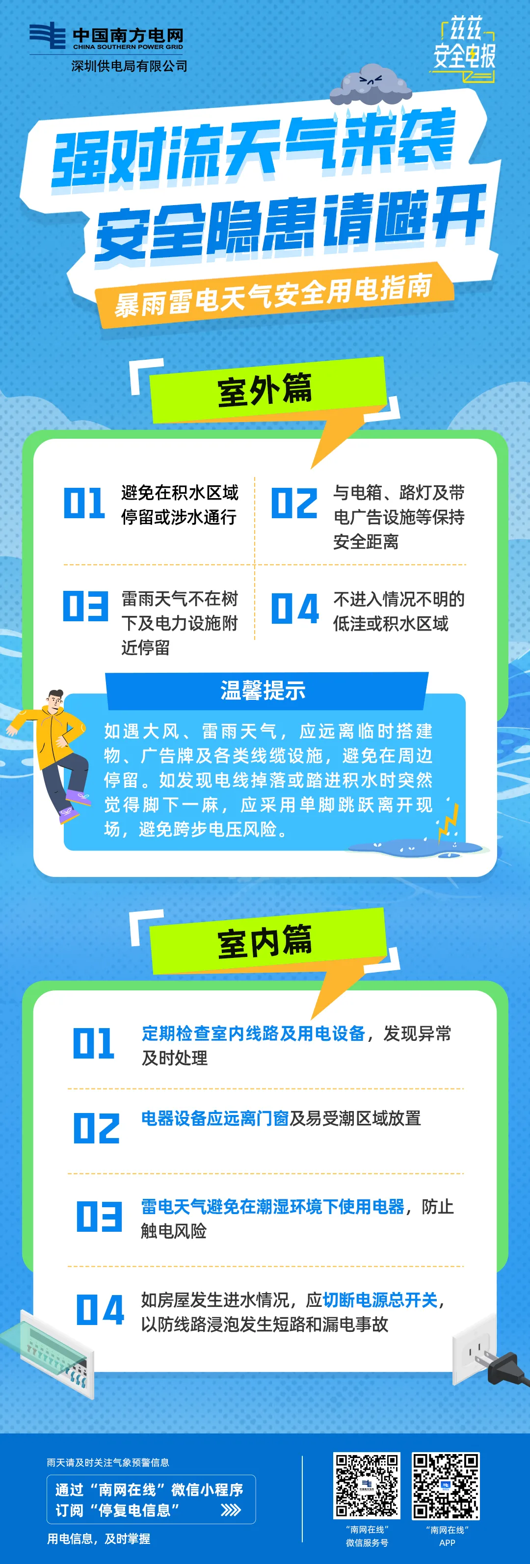 遇风雨及时避险,远离供电/带电设施