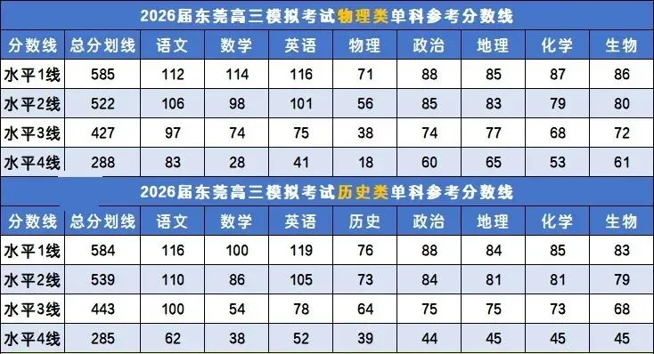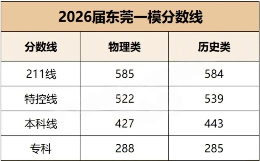 2026年东莞一模物理类特控线522分,历史类特控线539分。