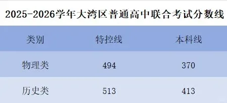 2026大湾区一模(珠海、中山、江门、清远、阳江联考)实行统一划线,物理类特控线494分,历史类特控线513分。