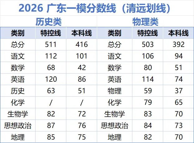 2026广东一模(揭阳、阳江、珠海、清远、汕尾联考)划线情况:揭阳、阳江等地划线参照省线,珠海、清远、汕尾3地单独划线!