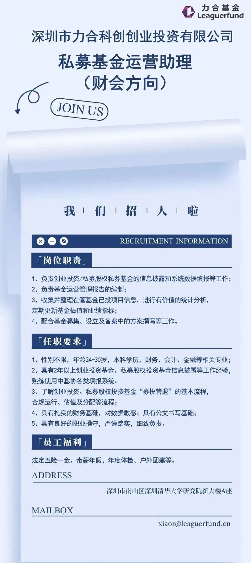 >NO.1068 深圳力合基金社会招聘!