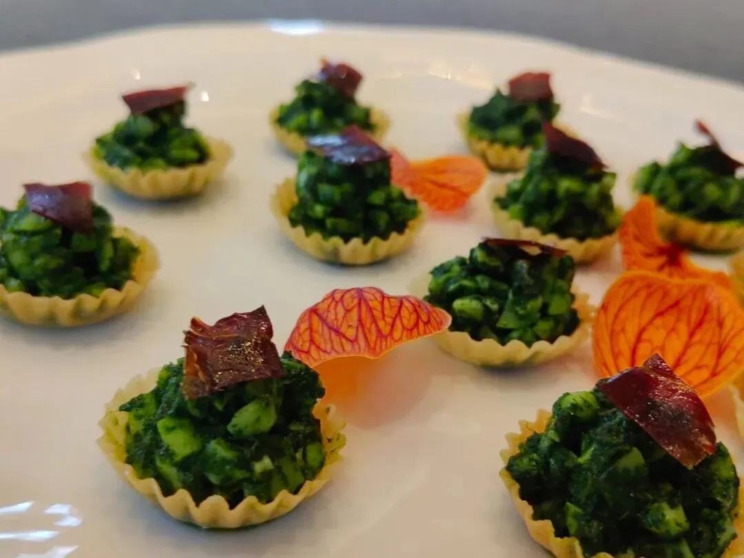 应四时变幻,尝春季时鲜。广舟按照四时八节、季节更迭呈现主题菜单,这次以“春鲜”为主题,春韭、空心菜苗、藠头、白鲳、松叶蟹、鲜鱿等时令食材,通过“老菜新做”的创意料理,用不时不食的理念契合起“食不厌精 脍不厌细”的出品坚持。让我们一行感受到江南浸润下春天的滋味,同时也感受到广舟出品团队对食材本味、技法融合上的用心。