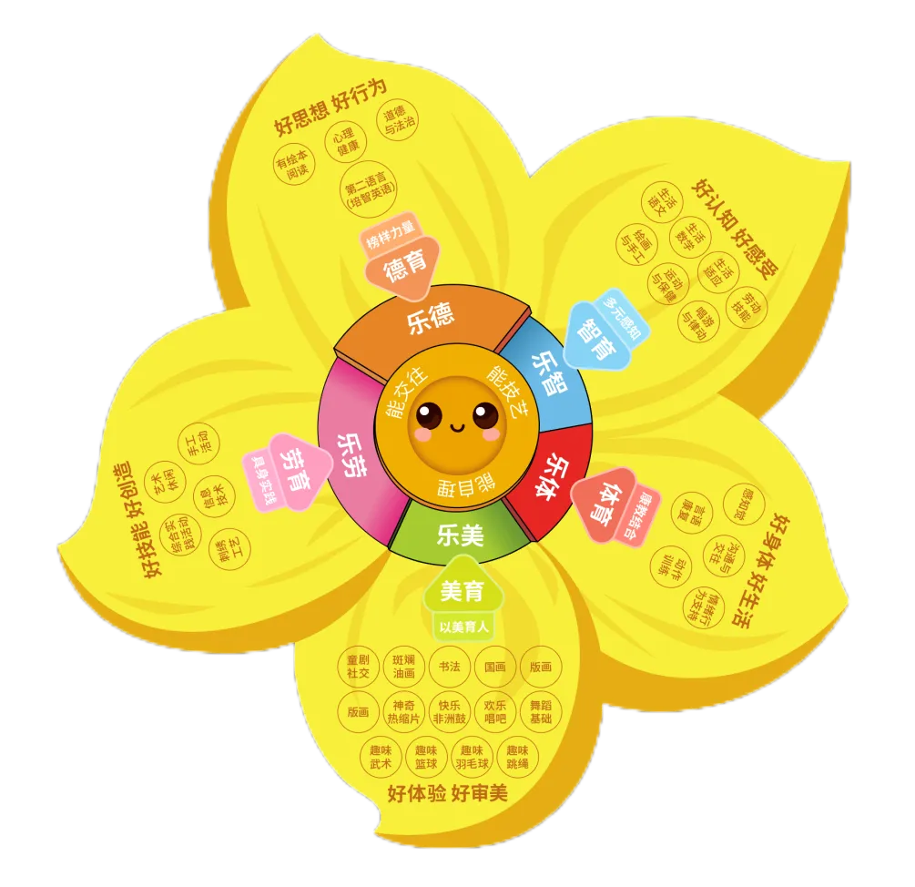 构建 “五乐 +” 润泽课程体系,围绕缺陷补偿与潜能开发,实现国家课程综合化、校本课程特色化,开齐 7 门基础课程,开发油画、刺绣等 21 门特色校本课程(刺绣为广东省特色项目),建立康复教学闭环。