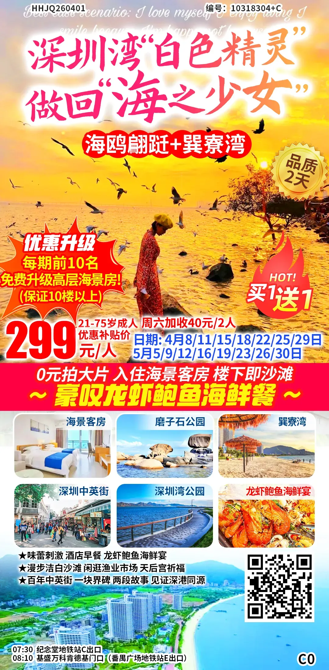 4、住宿:巽寮湾海公园酒店或同级(具体房型按酒店安排为准,酒店不设三人房,不可加床,不设退房差,单成人必需补房差);