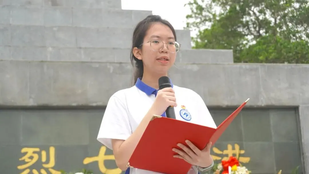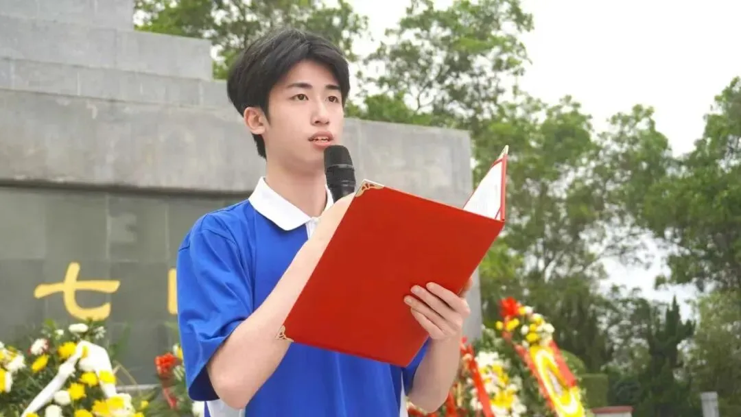 默哀毕,团员代表王同学上台发言,抒发对先烈的崇敬与缅怀,立下 “勤奋学习、报效祖国” 的青春誓言。