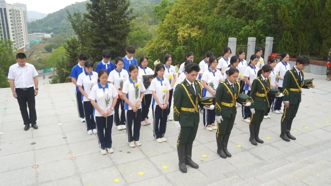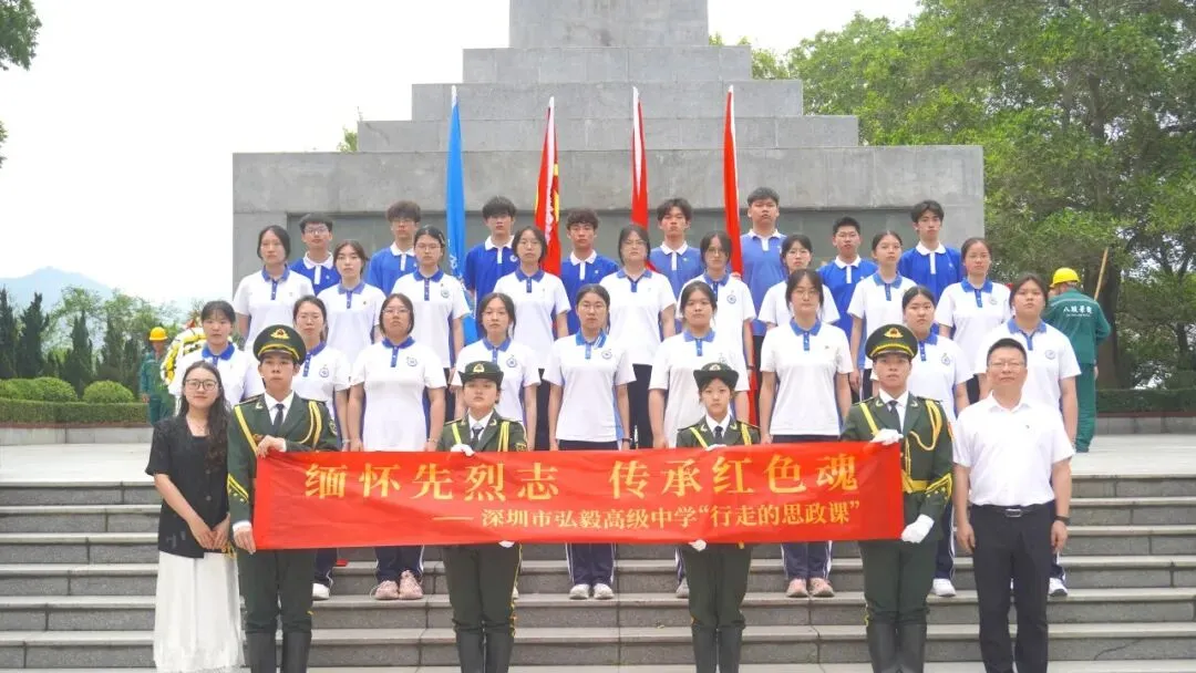 春风寄哀思,清明祭忠魂。在党团共建的引领下,为引导广大团员青年铭记历史、缅怀英烈、传承红色基因,2026 年 4 月 3 日上午,深圳市弘毅高级中学党支部携校团委组织部分优秀团员,在党支部书记、校团委书记及教官的陪同下,怀着崇敬之情前往洪田七烈士墓开展清明节祭扫活动。师生们以青春之名致敬英雄先烈,用实际行动践行“弘道·毅行”的校训精神,让红色精神在新时代青年中薪火相传。