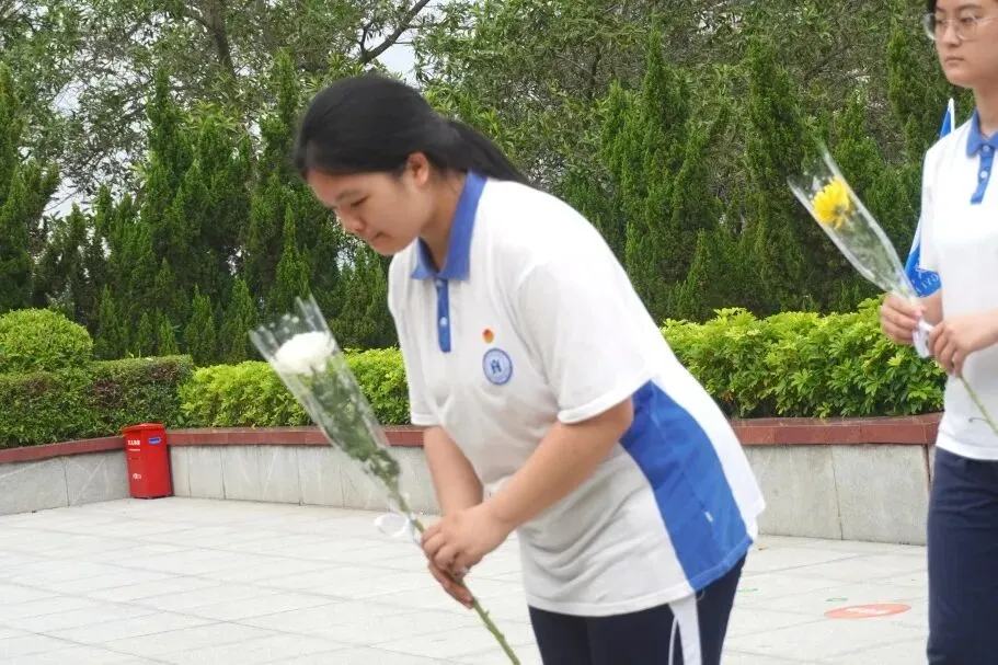 仪式尾声,旗手手持旗帜庄严绕行纪念碑,全体团员手持鲜花,有序上前敬献,将鲜花轻轻安放于碑前,以最朴素真挚的方式寄托哀思,表达对革命先烈的深切缅怀与崇高敬意。