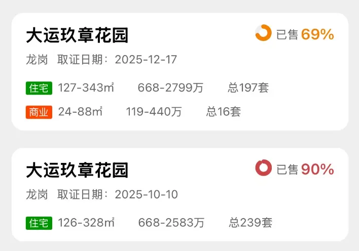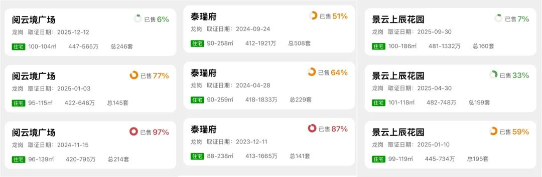 中海大运玖章、美域蓝湾花园、深业泰瑞府、深铁阅云境广场、景云上辰花园、颐安都会中央 6 期(待售)