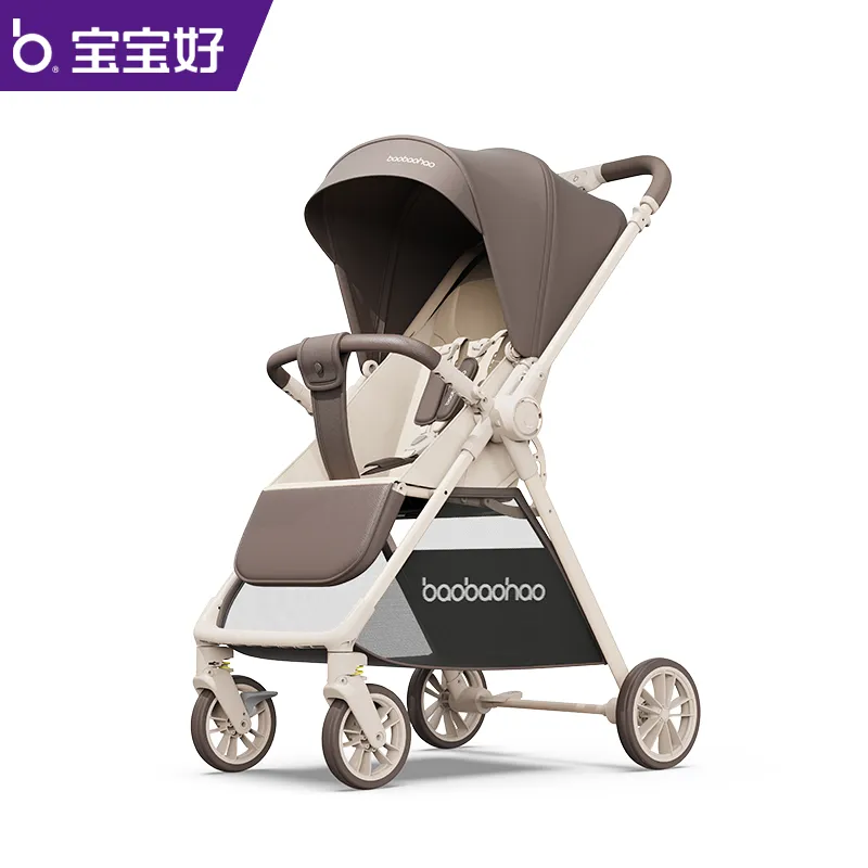 双向轻薄婴儿推车,轻盈车身,双向一键切换,正向探索,反向贴贴。折叠仅宽20厘米,一手掌握的轻薄。能坐能躺,冬夏两用,加宽舒睡舱,呵护新生安睡。经典焦糖奶茶配色。