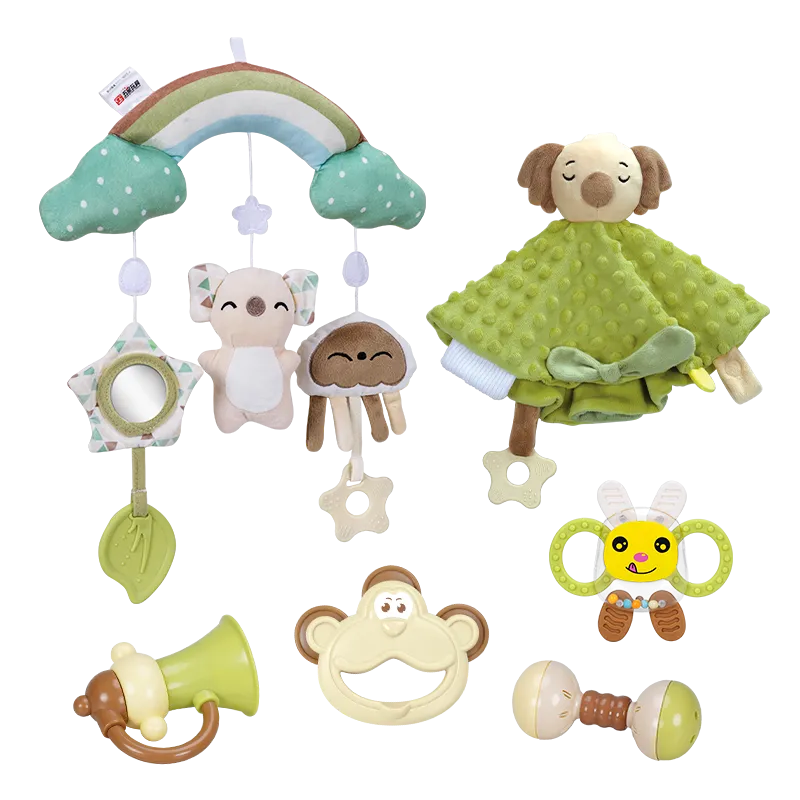 考拉臻爱礼盒,软萌摇铃套装,云感充棉床铃,豆豆绒安抚巾,软弹动物牙胶,献给宝宝的第一份启蒙礼,安抚哄睡,陪伴快乐成长。