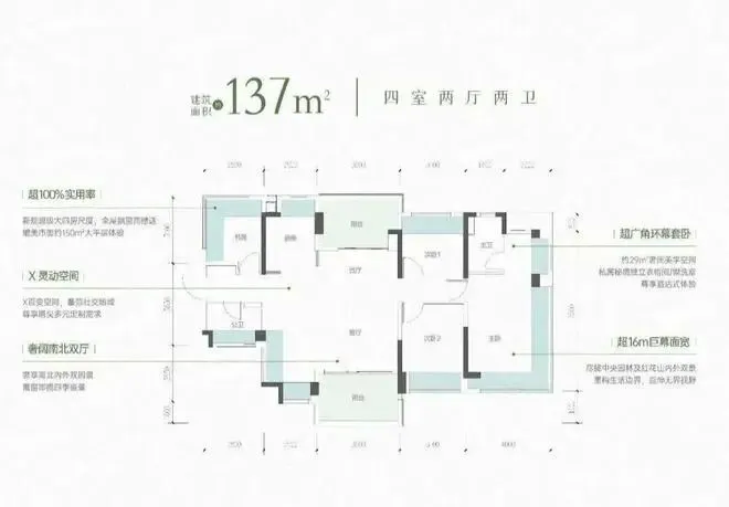 建面约138㎡四房,三代同堂、二孩家庭的终极改善选择。