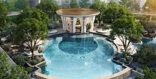 以圣特罗佩四季酒店浮岛泳池为蓝本,取蒙德里安《海堤与海》的线条与光影,于约560㎡无界水面上,解构光与水的诗意。区别于常规方形泳池,圆润的曲线不仅带来更浓烈的度假感,更让水循环更高效、水质更清澈。无锐角设计,孩子玩耍也更安心。炎炎夏日,不必远赴地中海。