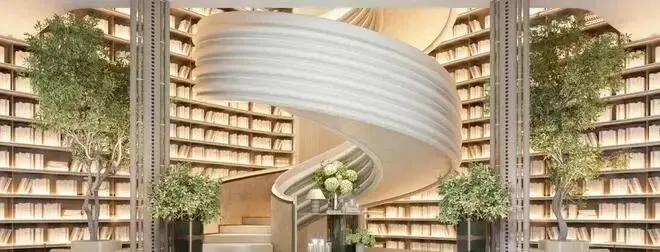 汲取白马庄园旋转楼梯灵感,定制局部挑高超9m万卷书屋,打造区域首个社区图书馆,上千本书籍静待翻阅。