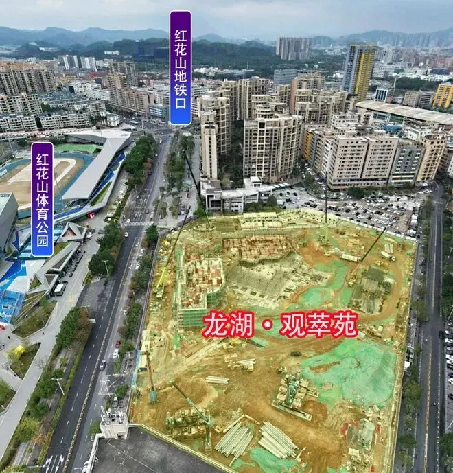 龙湖观萃苑,由龙湖集团打造,总占地面积约2.05万㎡,总建筑面积约9.21万㎡,计容建筑面积约7.72万㎡,容积率3.1,绿化率30.01%,共由5栋总高25层的住宅组成,分别是1/2/3/5/6栋,4栋是1所9班制幼儿园,另规划有菜市场、托育机构、长者服务站。