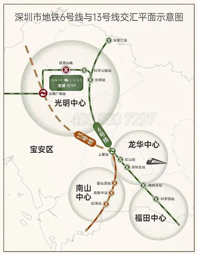 项目周边双地铁交汇,步行约300米就是6号线红花山站,一站可达公明广场换乘13号线(在建)。