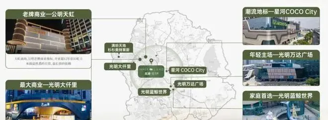 项目约1公里生活圈里,分布有光明体量最大的商场大仟里,以及天虹等街区商业,再远一点,到星河COCO CITY、蓝鲸世界、光明万达广场等,也不过是几站地铁的事情。