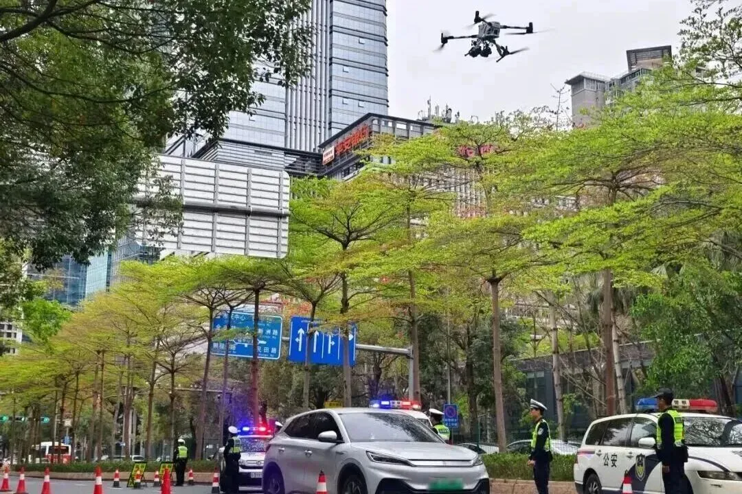 深圳交警今年3月启动“迅雷01”专项行动,还出动无人机设备。(深圳发布)