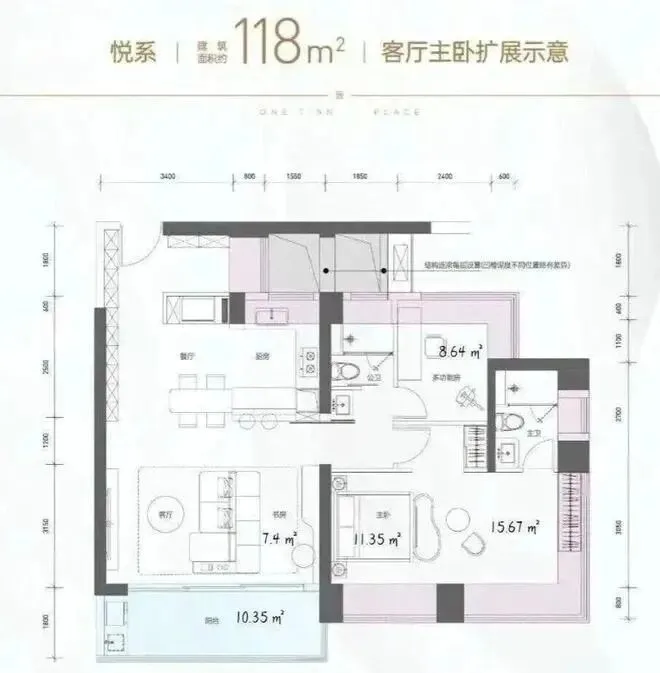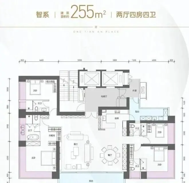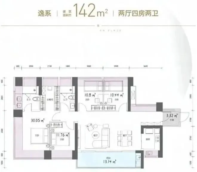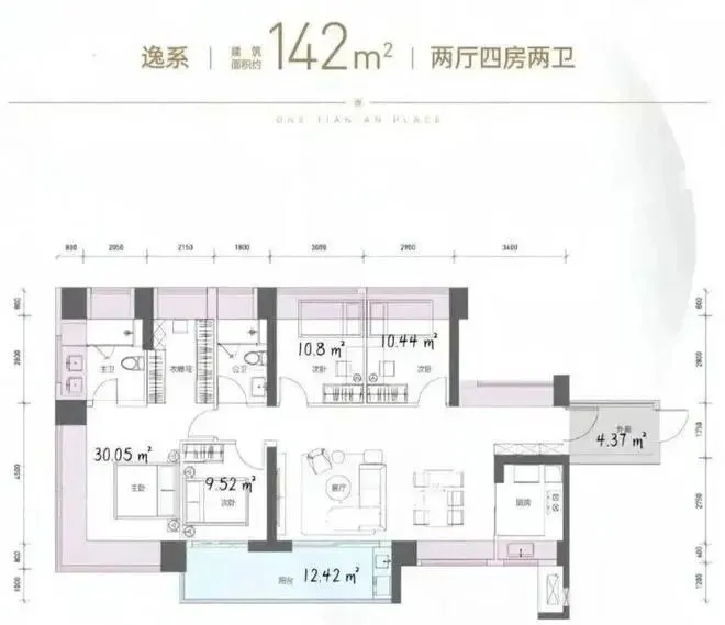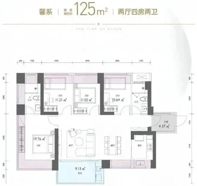 - 约119㎡ 4房2卫高能户型,单价区间:5-5.29万/㎡