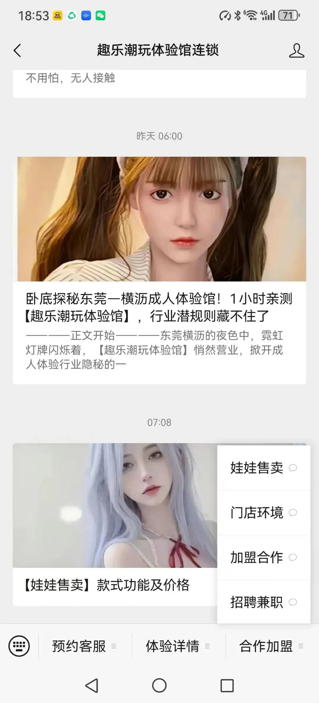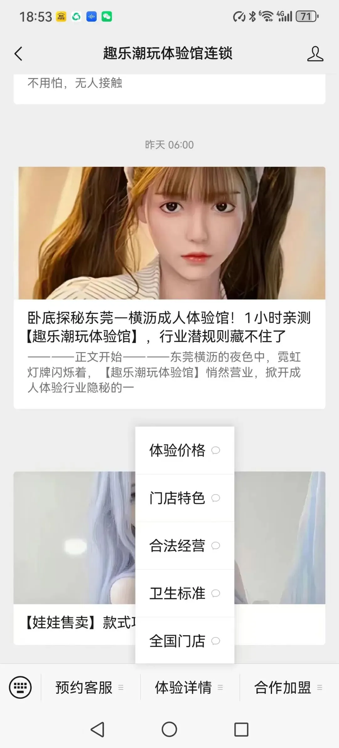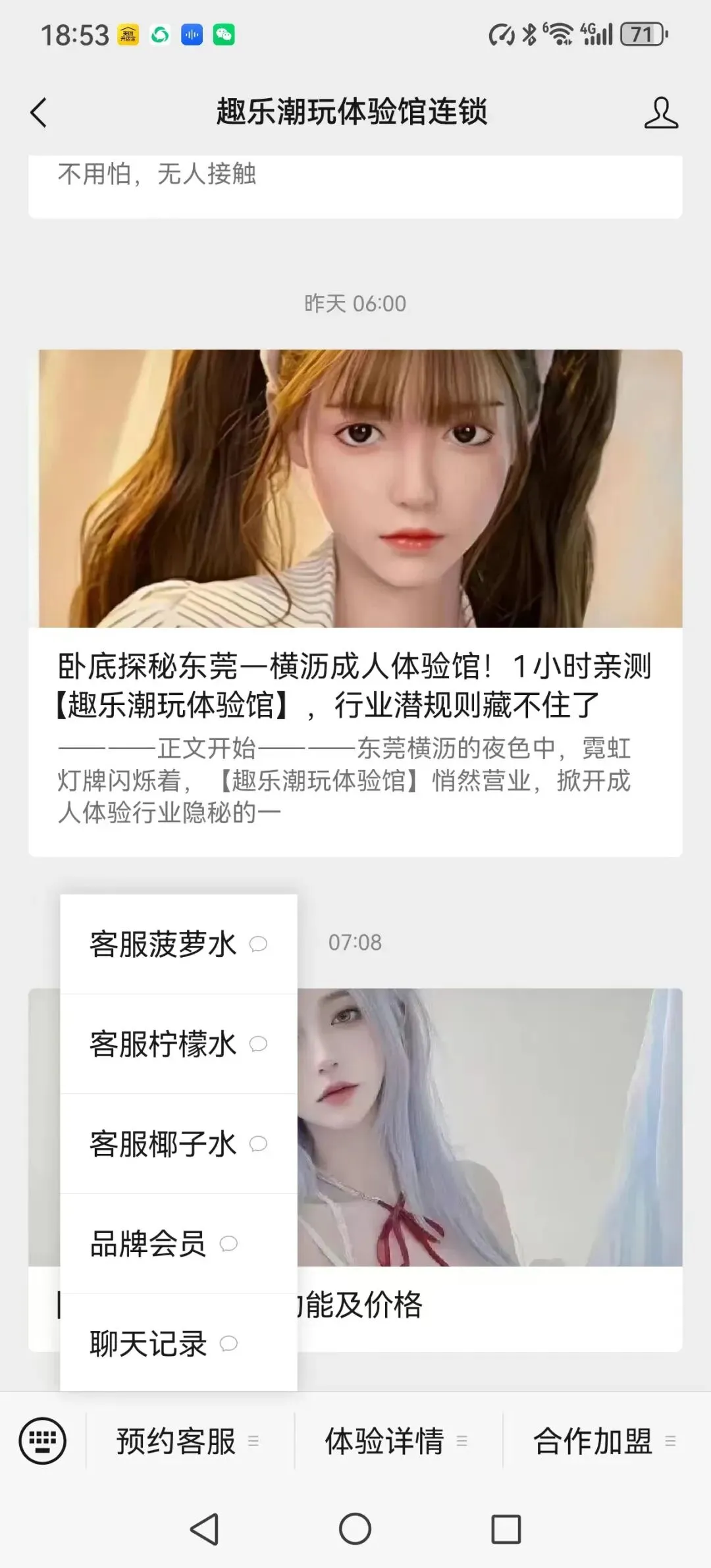 预约十分简单:全程线上预约,没有真人见面,微信联系客服发送自己的地址与准备体验的时间,客服会立即根据你所在的地址安排附近的成人体验馆门店。