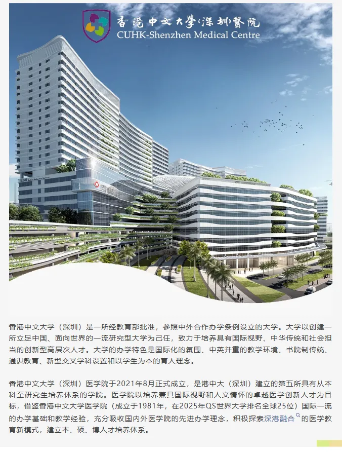 第二步:关注之后在公众号聊天框发送关键词“香港中文大学深圳医院”获取完整报名链接