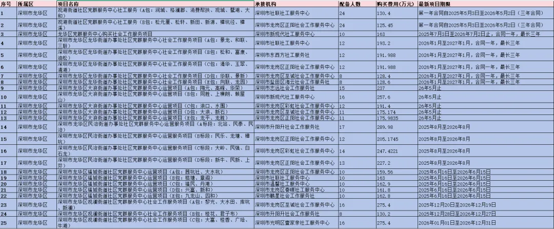 本号不熟深圳社工项目的情况,纯业余学习统计,若有错误,欢迎指正。